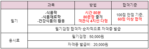 시험과목 / 합격기준 / 응시료